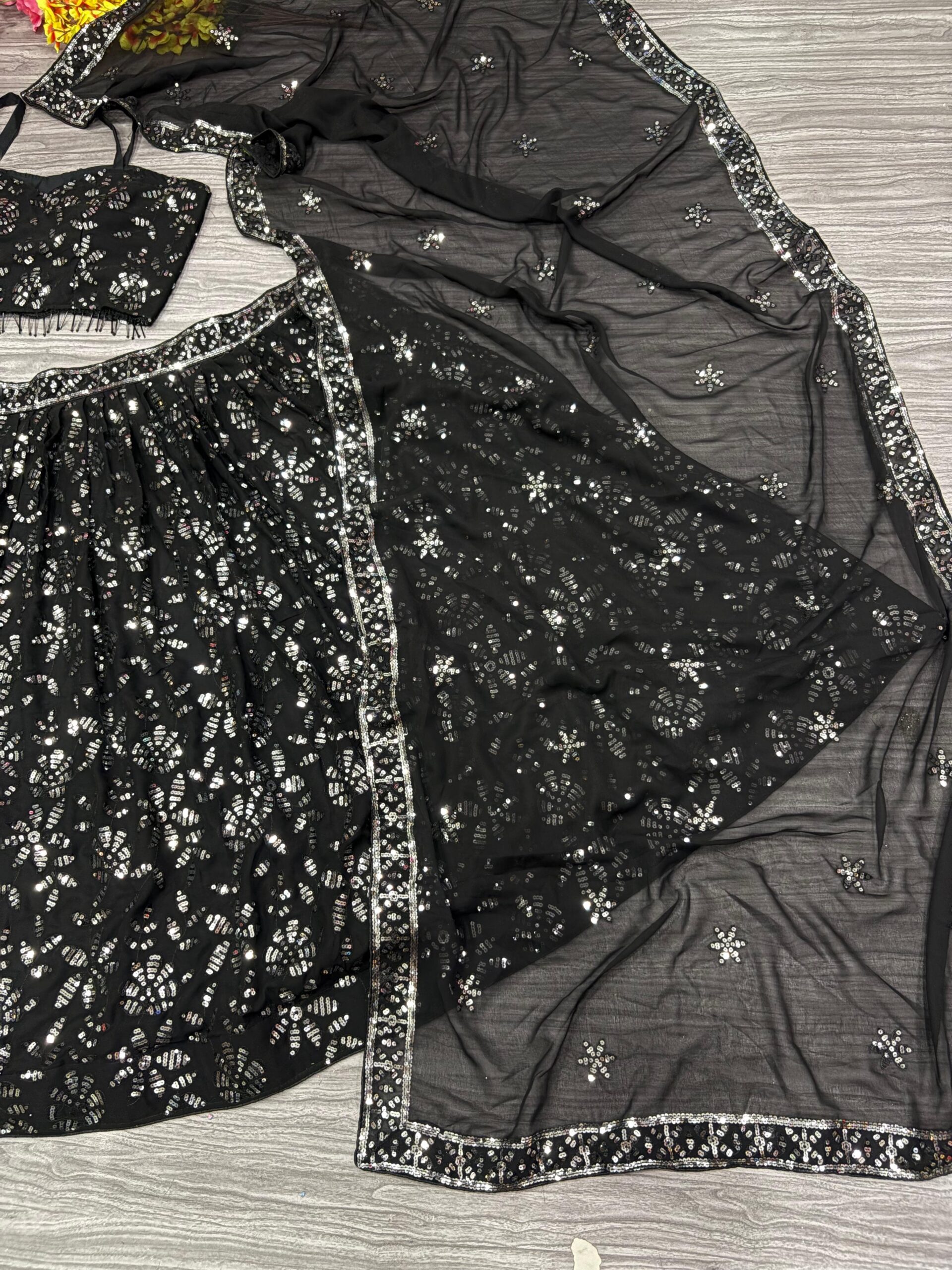 Saree Work : Heavy 5MM & 3MM Khichdi Sequence Embroidery Cutwork Work Lace Border in Saree