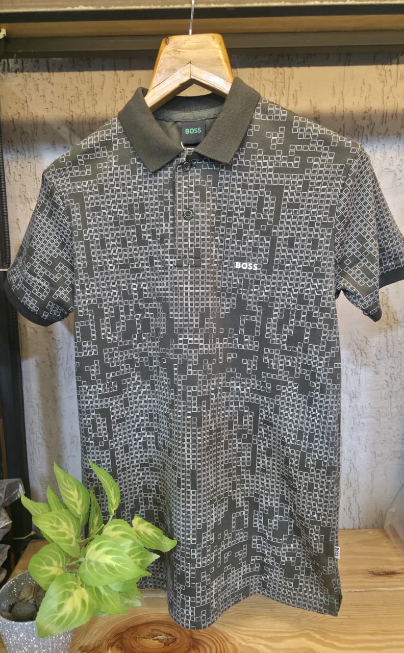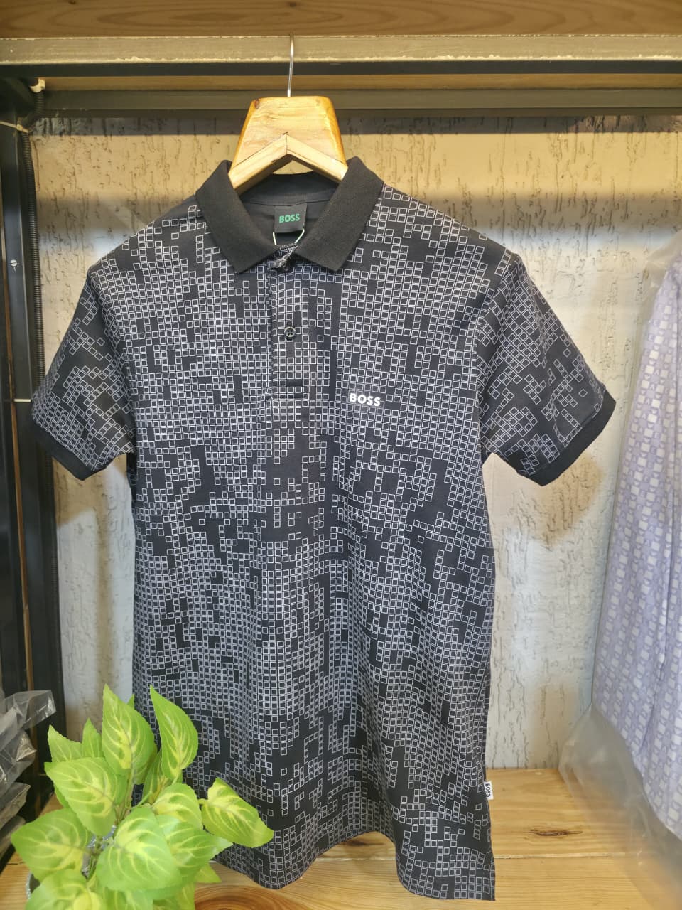 Featuring striped tipping for a colorful touch, this modern polo shirt is crafted in interlock material for comfort.
