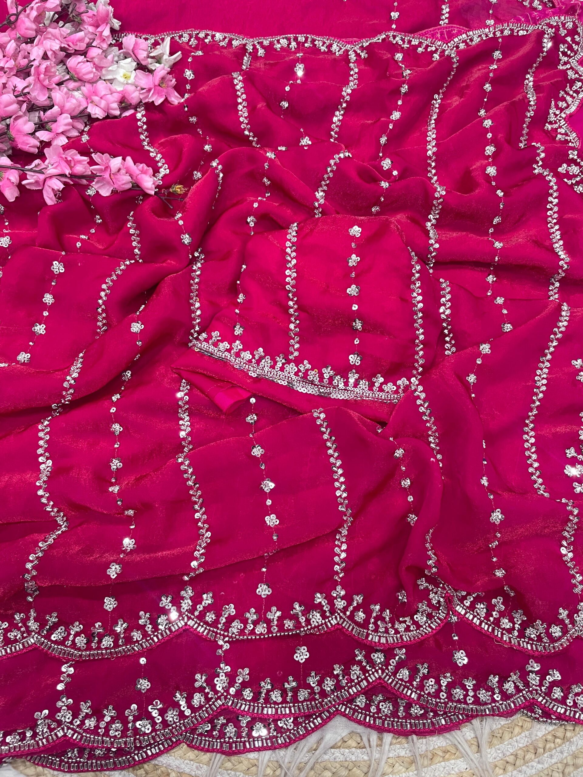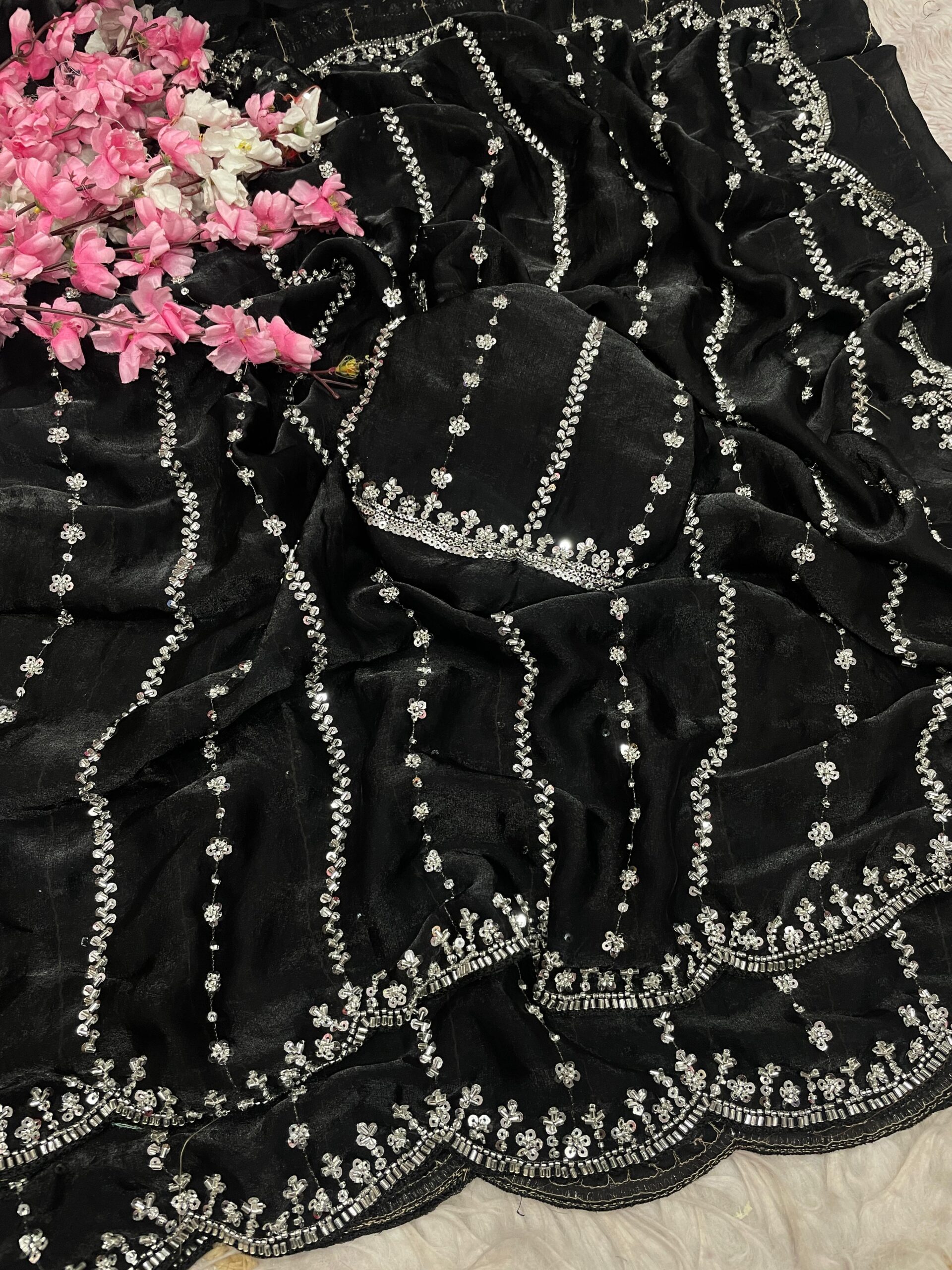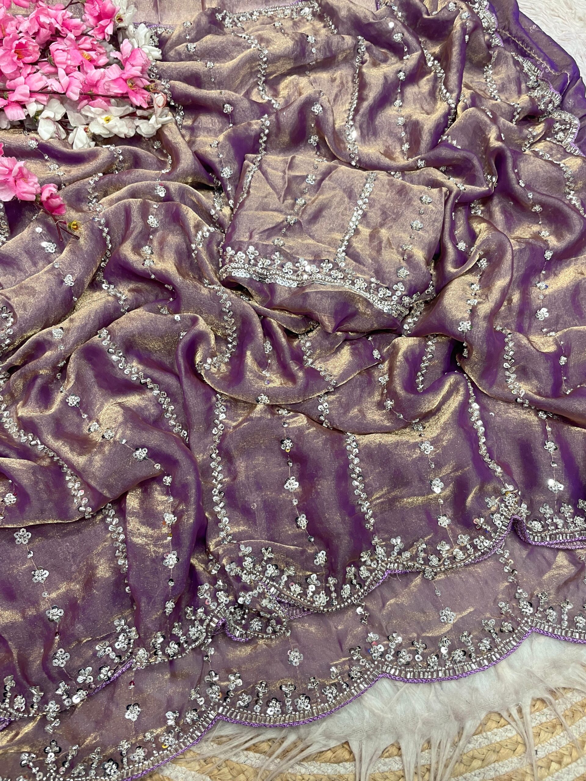 Work : Beautiful Sequence Brits C- pallu work along with all over arco border