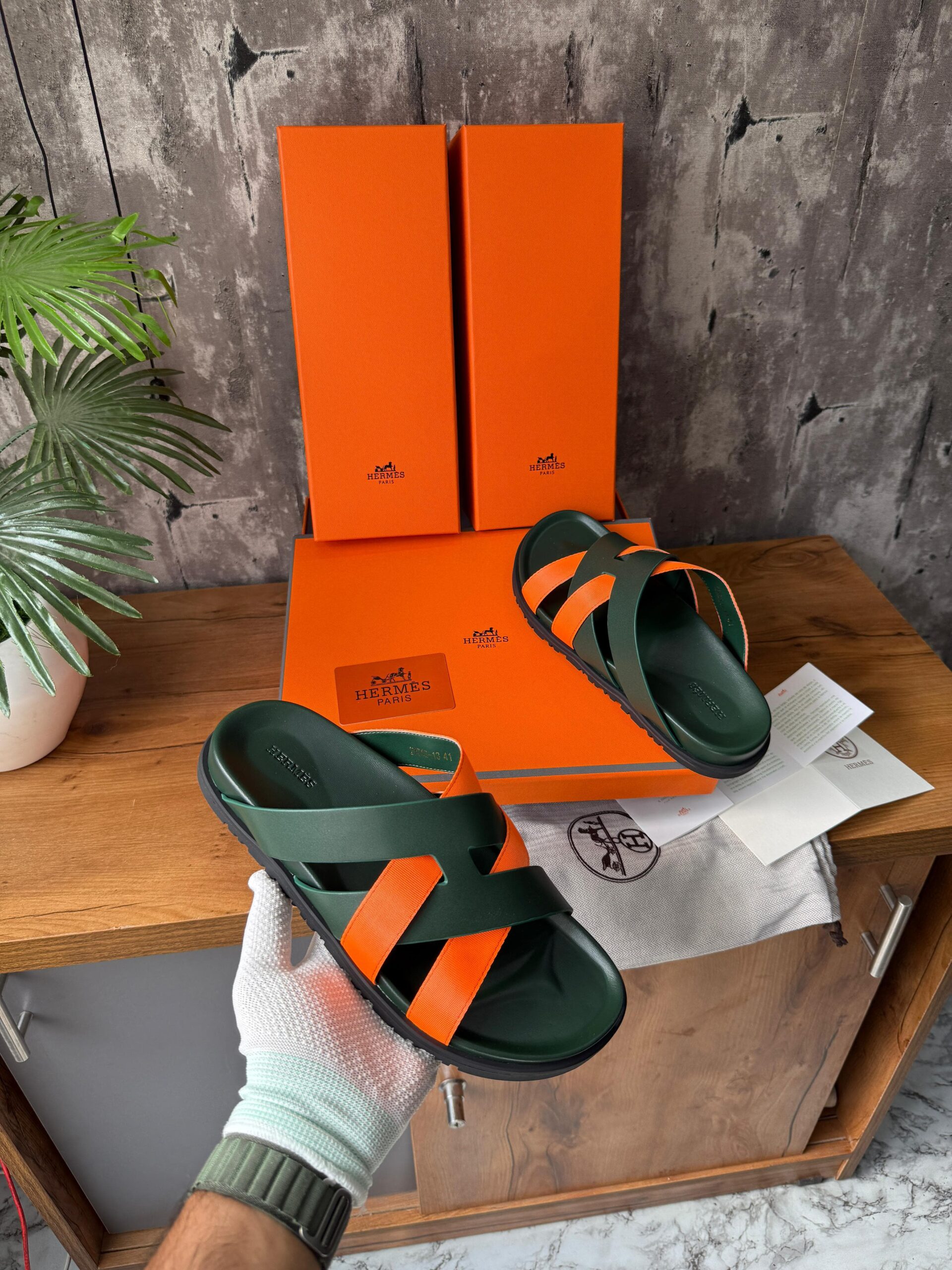 Sapphire glass on a green dial with silver hands, fastened by a high quality green croc leather strap with original deployment clasp.