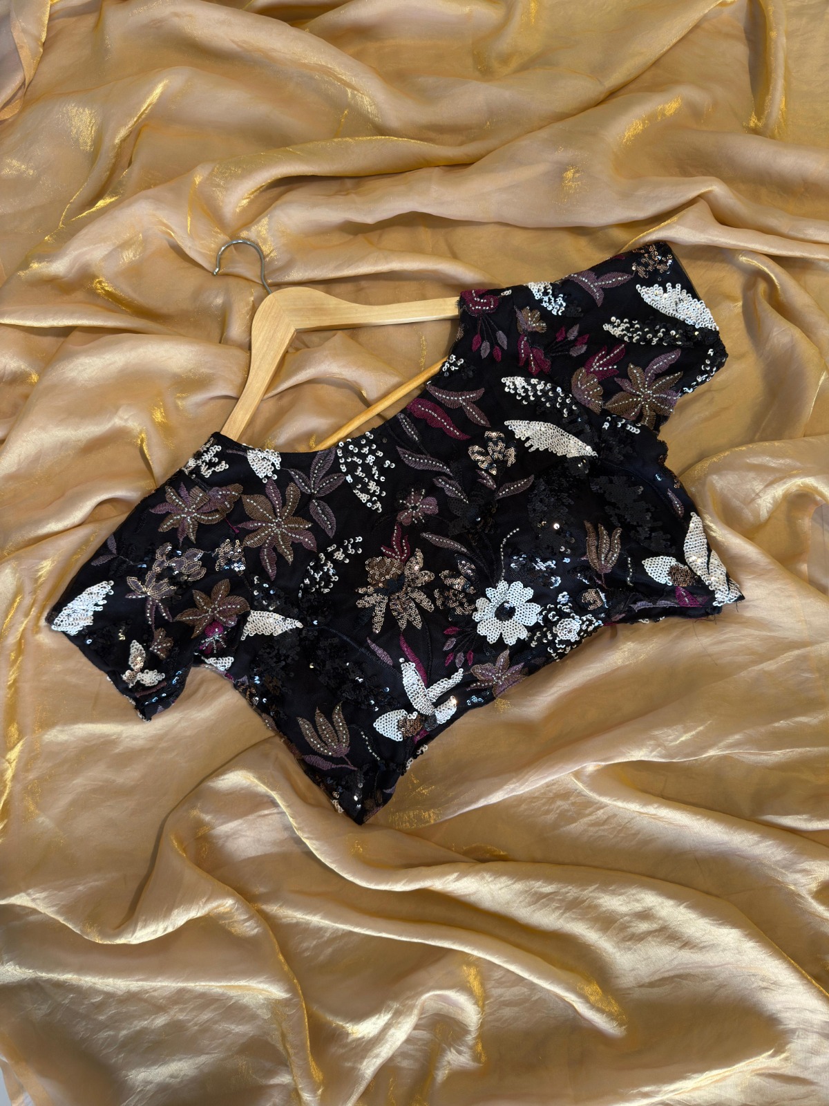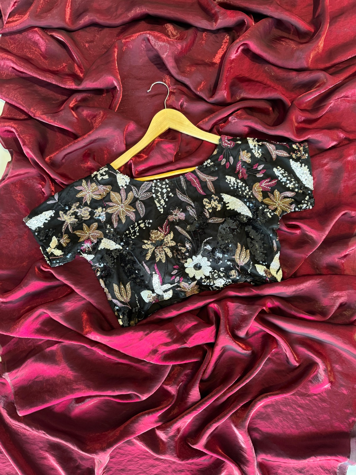 Party Wear Fluid Tissue Silk Saree & Embroidery sequence and val moti Work Blouse