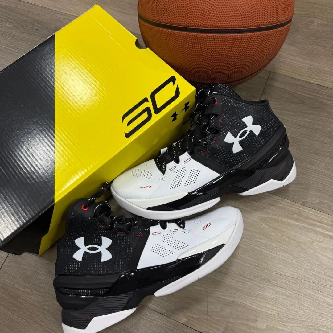 The Under Armour Curry 2 (Black/White) is a, high-performance basketball shoe featuring Cushioning for impact absorption and a, lightweight upper for support.